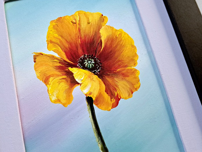 Las amapolas forman parte de mis creaciones de flores. Aplicando pequeñas pinceladas de pintura en tonos cálidos como el amarillo y rojo se van formando unos pocos pétalos que transmiten una ilusión de vivir la vida a plenitud, con alegría, esperanza, prosperidad y éxito.